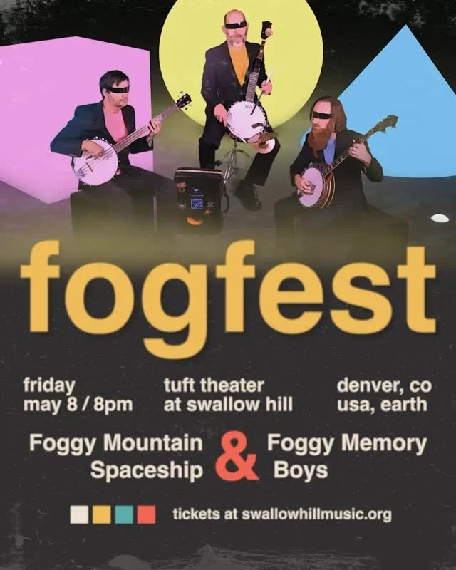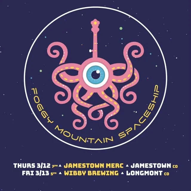 Foggy Mountain Spaceship features Chris Elliott on Banjo, Chris Sheldon on the Banjotron Acoustikit 2000β’, and Kyle Ussery on Bass. The band performs original compositions, unexpected covers, psychedelic instrumentals and more. Find us on social media and come catch a show!